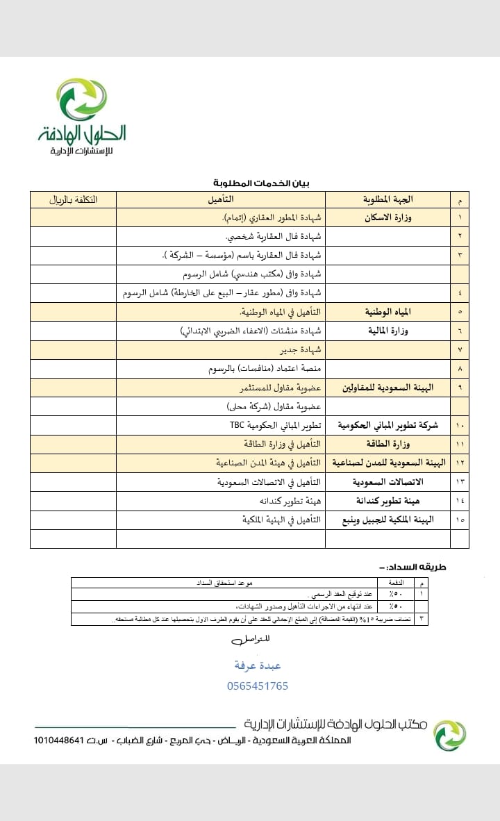 يسر الحلول الهادفة ان تهنيء شعب و حكومة مملكتنا الحبيبة بالعام الجديد2026 عام خيرا و نماء بأمر الله تعالى كما نخص عملائنا الكرام من مقاولين و مستثمرين و رجال و سيدات اعمال بحلول هادفة لكافة خدماتنا اعمال التصنيف للمقاولين و المكاتب الهندسية - بلدي أعمال التأهيل في القطاعات الحكومية و الهيئات - البيع على الخريطة وافي الخ الخ أعمال الجودة و الايزوووو أعمال تصنيف الشركات الاجنبية على اوراق المنشأ فورا بدون انتظار حلول الاستثمار الاجنبى و شراء شركات و الدخول بها الحلول الصناعية نراخيص و ارض و تمويل حلول الشركات العائلية حلول الهوية الرقمية و الامن السبراني حلول المحتوى المحلي اعمال الحوكمة و الهيكلة و التقييم تنمية الايرادات و تطوير الاستثمارات الاستشارات و الدراسات الادارية الخدمات اللوجستيه للمقاولين من بيع شركات و شراء و تضامن ================================ المركز الرئيس - مجمع الضباب بجوار الغرفة التجارية ش الضباب - الرياض مستشار ابوبكر بلال 0507327207 الموقع الاليكتروني Hhksa.com