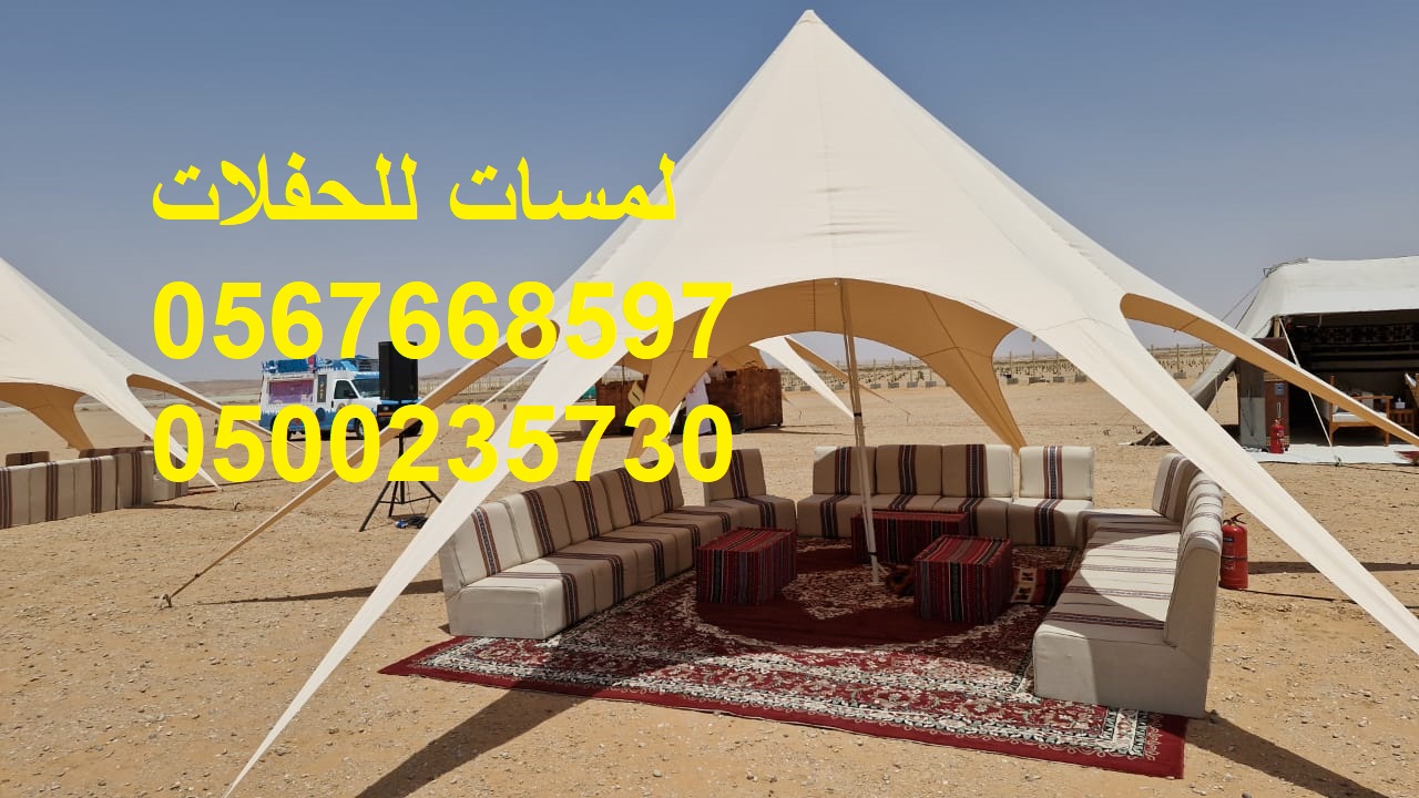 مؤسسة لمسات للحفلات تقدم: تجهيز حفلات,تزين قاعات افراح,ايجار جميع انواع المجالس, جلسات ارضيه تاجير طاولات كوكتيل متوفرة بالأنواع : مضيئة , تلبيسة , حديد مع خشب , بللور , تاجير كنب جلد , تاجيرمكيفات خيام متوسطةللايجار, خيام كبيرةللايجار, ايجار كنب ملكي خدمات تنظيم الاحتفالات ,كنب جلد ابيض كراسي فندقية , طاولات طعام وبوفيه , طاولات اجتماعات تزين قاعات,ايجار جميع انواع المجالس, جلسات شالكي الوان مختلفه ايجار خيام,كنب شعبي,ايجار كنب ملكي, ايجار تراثيات تاجير دفايات فيصليه وعاديه وتاجير خيام شفافه وجلسات مودرن تنظيم وتأجير لوازم المناسبات والاحتفالات العامه والخاصه اختار ما يناسبك من الصور للتواصل معنا على الارقام التالية: 8597 766 056 730 235 00 05