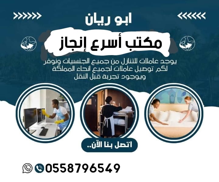 حيااااكم الله عملائنا الكرام :- نعلن عن وجود خادمات للتنازل ممتازين بالعمل لنقل الكفالة. <ملحوظه > يوجد قسم خاص لاستقبال الخدم (ويوجد ارسال نقل جماعي او طيران) نحن في خدمتك يا فندم اذا كنت تبي تتنازل عن خادمتك بطريقة نظامية لضمان حقك وحق الخادمة. انت وخادمتك معنا في أمان بفضل الله. ثقة لا تنتهي بعقود موثقة ومضمونه ( لسنا الوحيدون ولكننا بفضل الله نرضيك ) ابوريان للتواصل اتصال او واتساب 0558796549