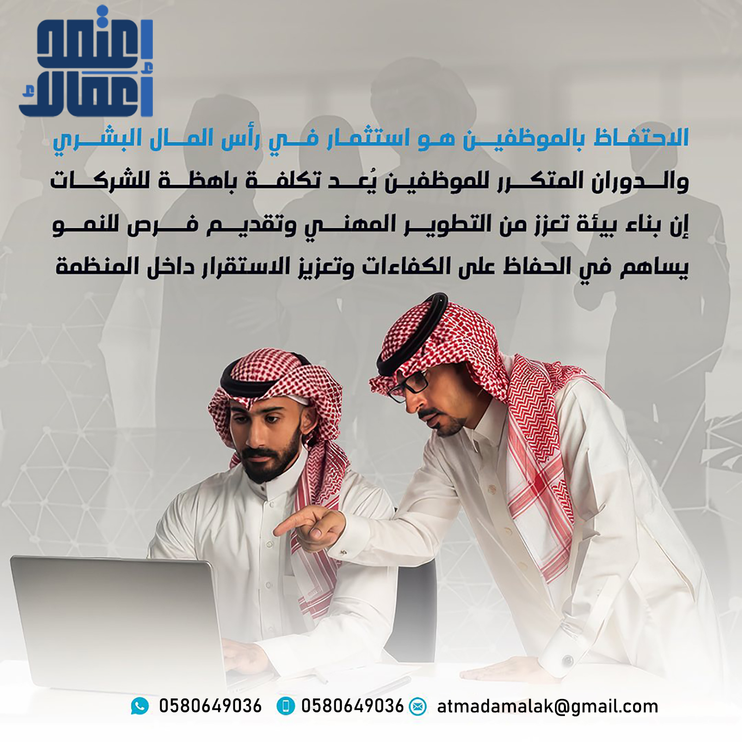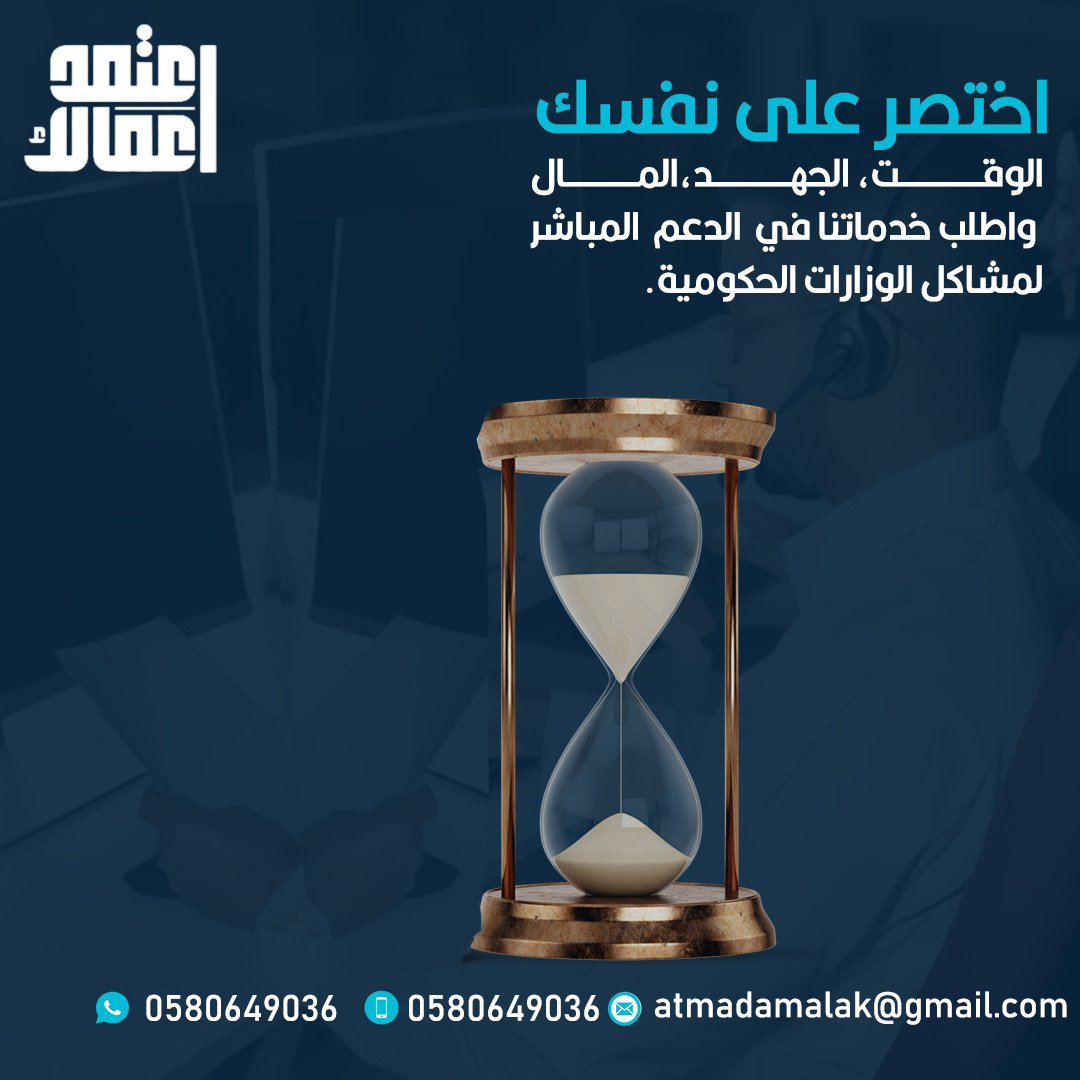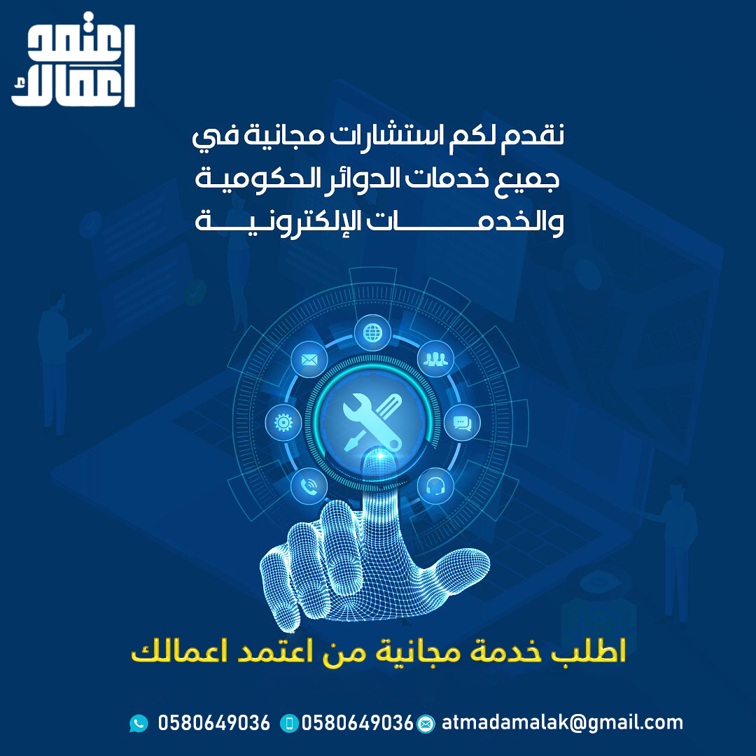 #اعتمد_اعمالك الآن ولا تتردد بالإنضمام إلينا..... شركة متخصصة في تقديم خدمات الدعم المباشر لقطاع الأعمال، دعم وتمكين الشركات والمؤسسات، تسهيل وإدارة جميع الخدمات العامة والحكومية وإدارة المعاملات الرسمية وإدارة الموارد البشرية ، نقدم حلول الأعمال الذكية للشركات والمؤسسات بكفاءة عالية وأقصى قدر من الاحترافية، ونحرص على حماية وثائق ومستندات عملائنا لنوفر لهم الوقت والمال والجهد للتركيز على النجاح والازدهار بالعمل . - متوفر لدينا باقات مرنة على مدار السنة . - متوفر لدينا باقات حماية الأجور . - يمكنك تفصيل باقتك على حسب احتياجك . - استشارات وحلول تناسب اعمالك . - تأسيس الشركات والربط مع الجهات . يسعدنا تواصلكم وطلب استفساراتكم على الرقم المتواجد فى خانة الاتصال .