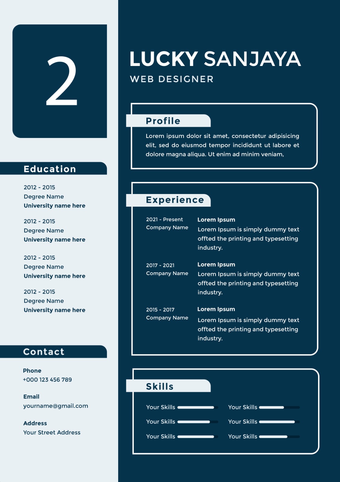 يسرنا أن نقدم خدمة تصميم السيرة الذاتية التي ستعمل نيابة عنك أثناء تقديمك لوظيفة أحلامك. فنحن ندرك أهمية السيرة الذاتية في عملية التوظيف والتأثير الذي يمكن أن تحققه في الحصول على فرصة عمل. تقدم خدمتنا التي تصمم سيرتك الذاتية بشكل متميز وفريد ليظهر مؤهلاتك ومهاراتك بأفضل طريقة ممكنة. بالإضافة إلى ذلك، ستشتمل السيرة الذاتية على مهارات شخصية ومعلومات إضافية لتمييز سيرتك عن غيرك من المتقدمين. سنقوم بتصميم السيرة الذاتية الخاصة بك بعناية فائقة، مع التركيز على التفاصيل الدقيقة لضمان تناسق وجاذبية التصميم. ستتضمن السيرة الذاتية النهائية معلومات الاتصال الخاصة بك وتفاصيل التعليم والخبرة المهنية، بالإضافة إلى قائمة بالمهارات التقنية التي تمتلكها. قوالب واشكال متعددة واتس اب: ( 0542725277) السعر 25 فقط