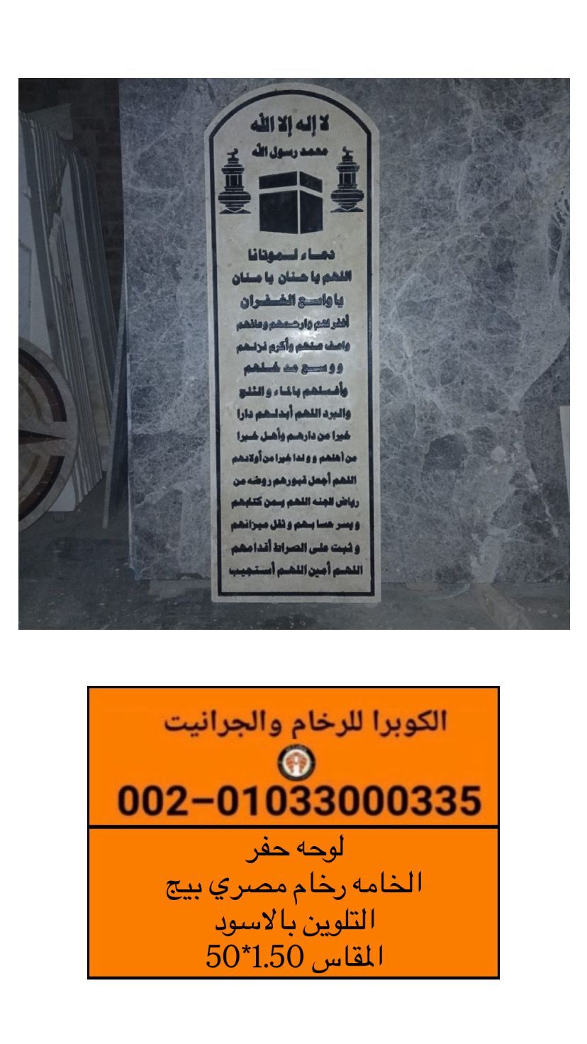 أسعار لوحات الحفر على الرخام | أنواع الرخام والجرانيت الكوبراللرخام والجرانيت 1- خبرة اكثر من30 عاما في مجال تصنيع وتوريد وتصدير الرخام والجرانيت بكل الأنواع والمقاسات 2- نتميز بوجود جميع أنواع الرخام والجرانيت المصري والمستورد المستخدم في الارضيات والحوائط والواجهات ودرج السلم والمطابخ والحمامات والديكورات الداخليه والخارجيه والبناء الحديث 3- لدينا جميع أنواع الحفر على الرخام والجرانيت و البرامق – احواض – قبلة مسجد – سررووترجيت – وزرووترجيت- دفايات. 4- نتميز بتقديم عروض وخصومات حقيقية على منتجاتنا. لمزيد من الاستفسار والمعلومات يسعدنا تلقى استفساراتكم على : تليفون/ واتساب: 01033000335